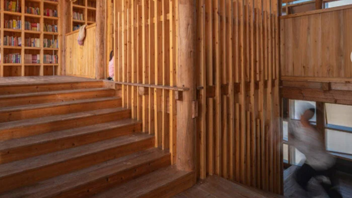 The beautiful library is built mainly of wood, in keeping with the heritage of the area; villages in Pingtan have historically been built of Chinese fir. The only non-local material is the polycarbonate panels used for the outside, which let sunlight filter in during the day, and lend the library a electric glow at night. The project was rooted in concern for the loss of the village’s traditional fabric in favor of concrete construction.