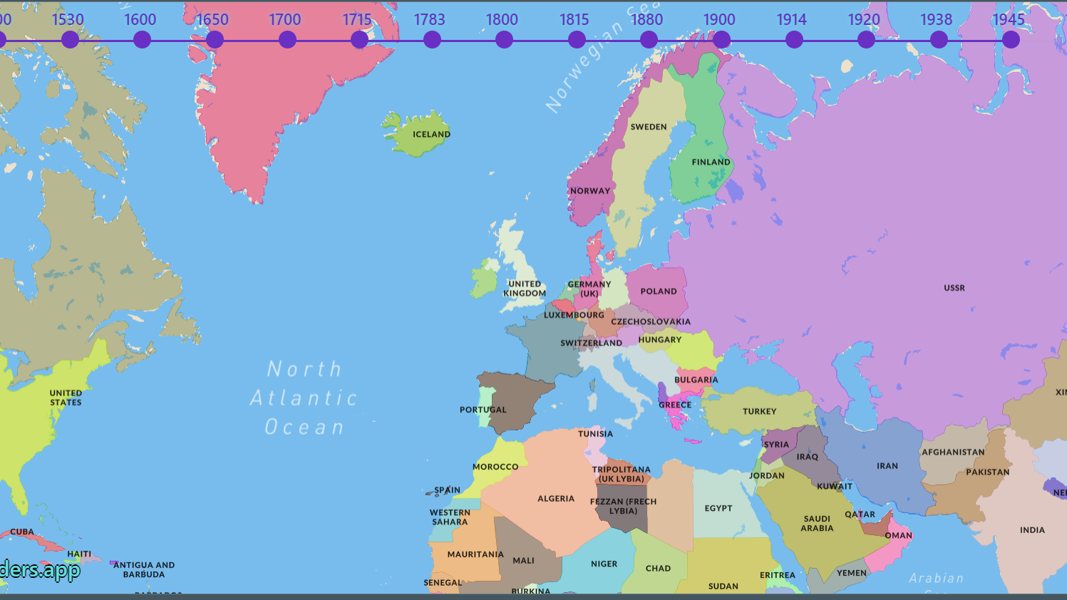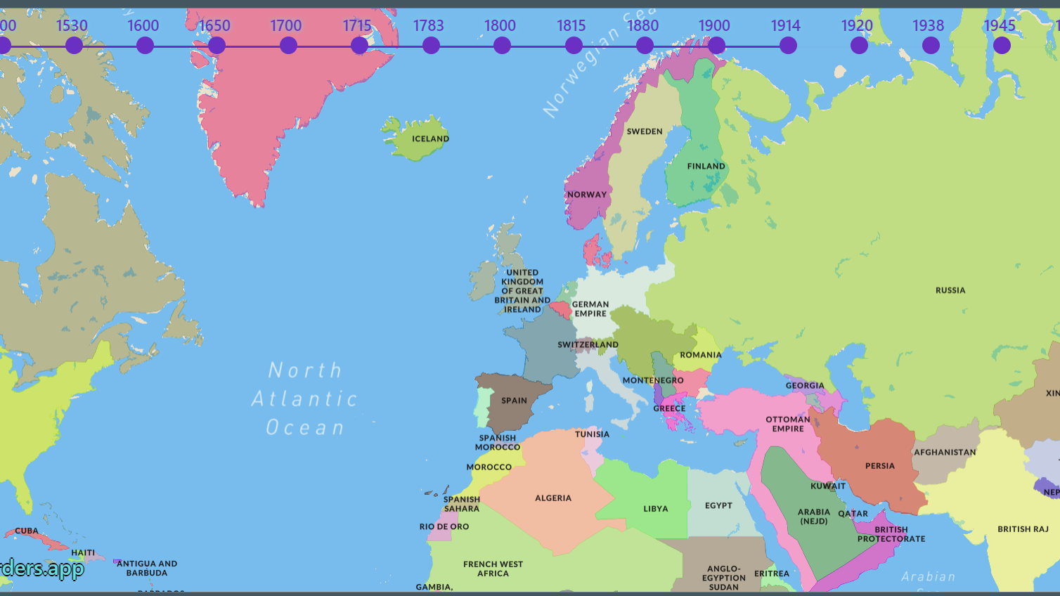 Historic Borders colorfully helps to visualize the seemingly arbitrary nature of national borders and how politics and war have reshaped the world. The app features a basic world map topped by a timeline slider. Just click on a date to discover the national boundaries of that time.