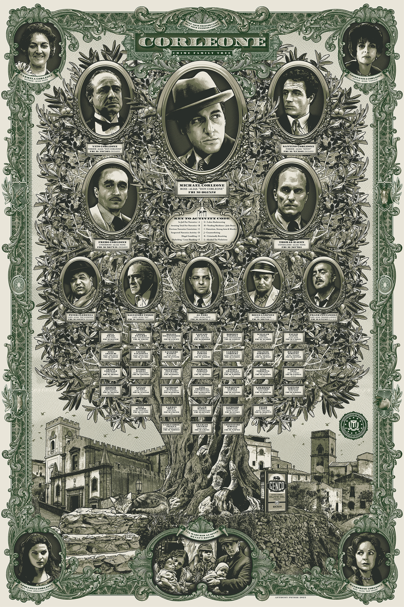 The fantastic poster above was created by California-based designer and poster artist Anthony Petrie. Titled “Carta Criminale” the four-color screen print is available in a signed and numbered edition. My favorite touch is the little olive oil can. You can discover more about the poster and purchase your own copy at Petrie’s website.