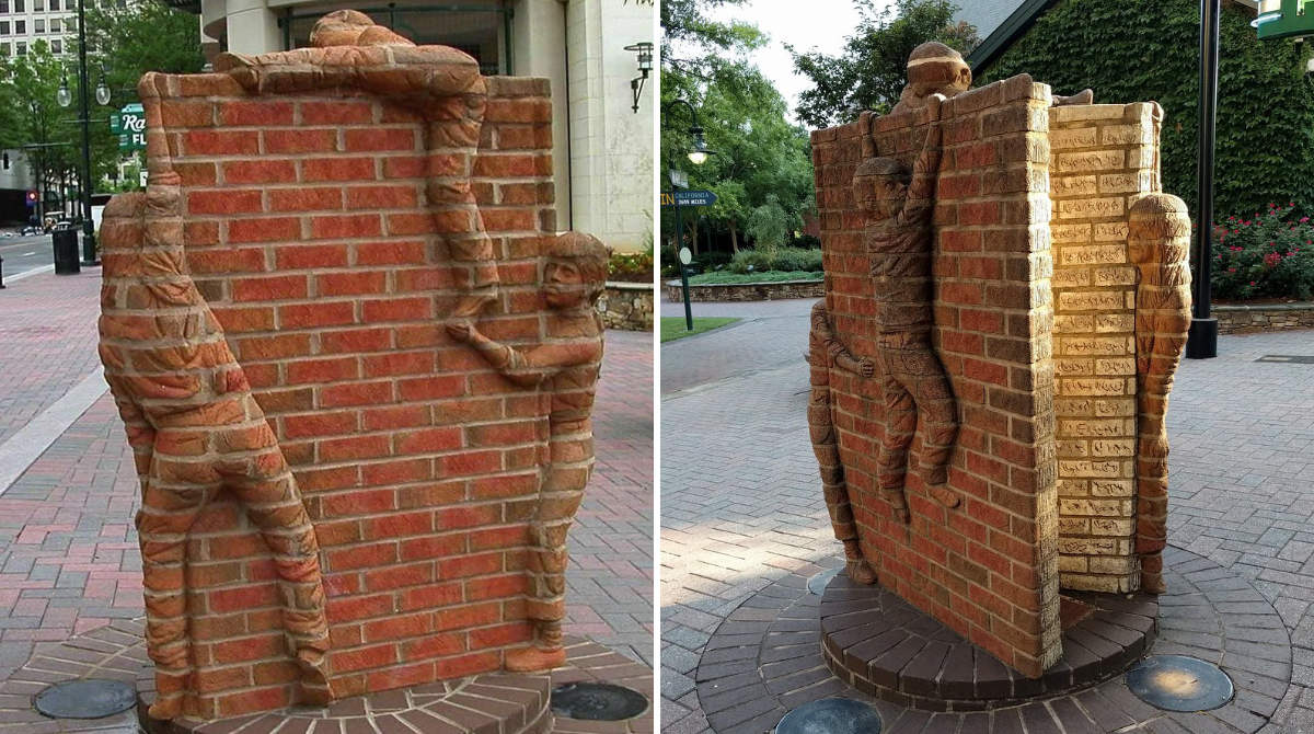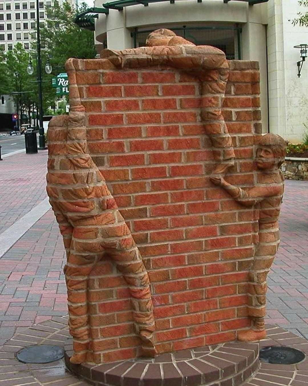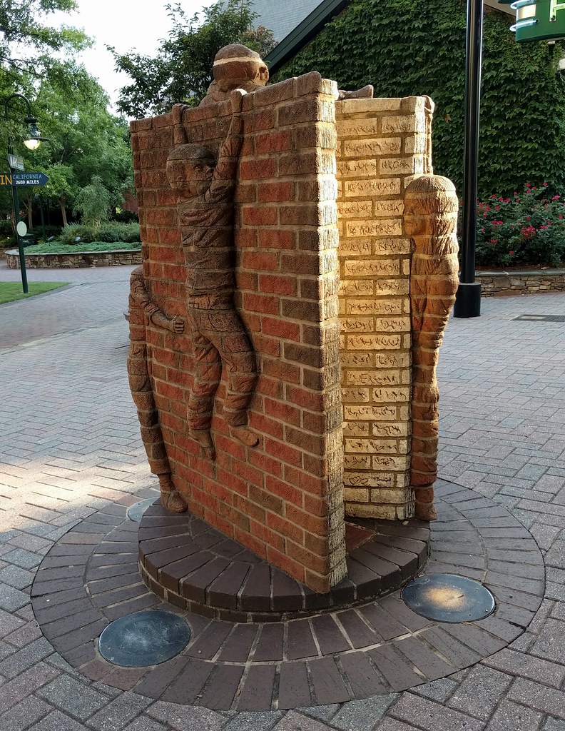 The art of brick sculpture goes back to ancient Babylonia. It has fallen out of favor in modern days, but the work “Life Is An Open Book” by the American sculptor Brad Spenser is a wonderful example of the form. Situated in a public park called The Green in Charlotte, North Carolina, the piece a just one example of literary themed art works in the square.