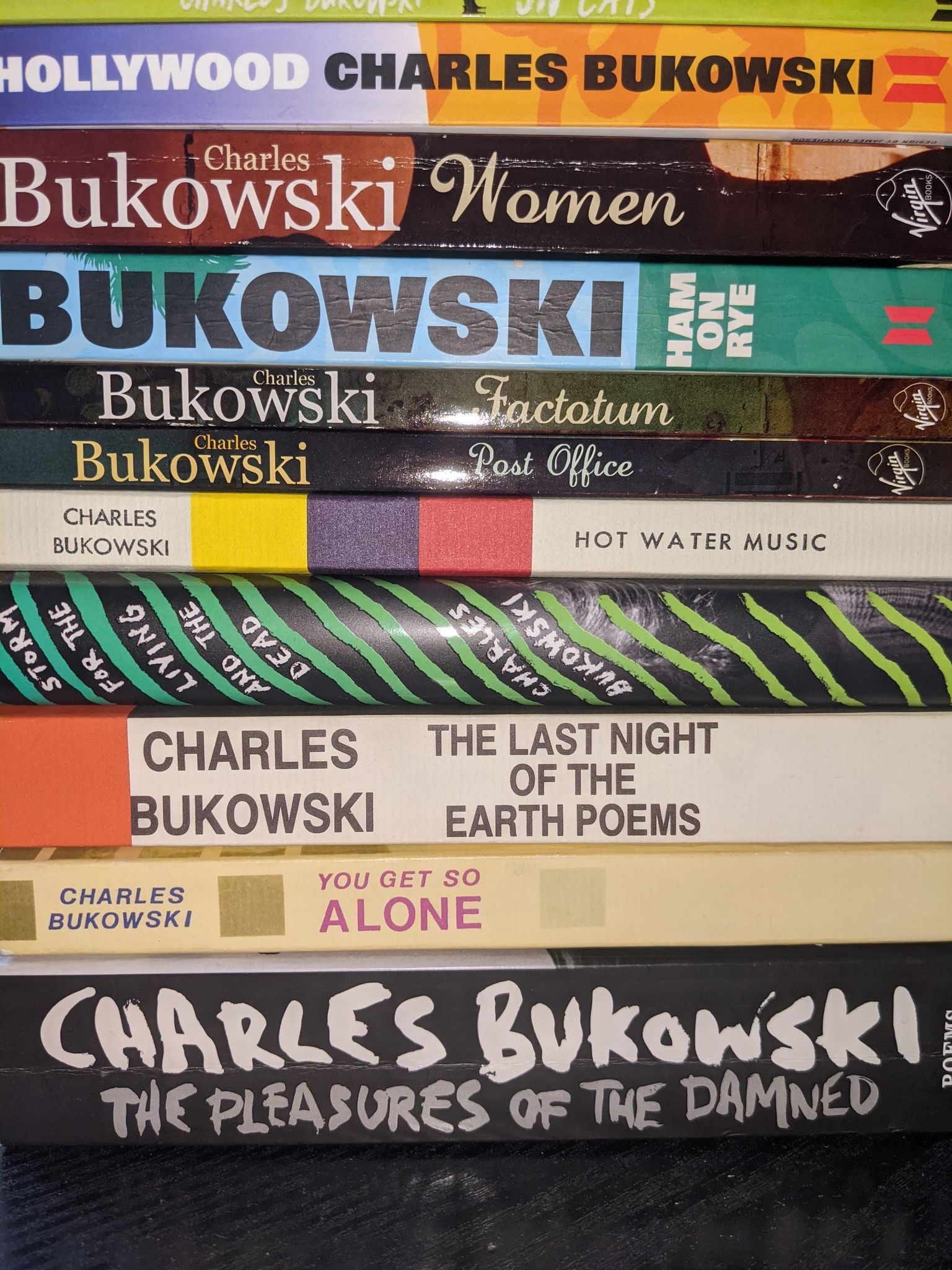 “Either peace or happiness, let it enfold you. When I was a young man I felt these things were dumb, unsophisticated. I had bad blood, a twisted mind, a precarious upbringing. I was hard as granite, I leered at the sun. I trusted no man and especially no woman… I challenged everything, was continually being evicted, jailed, in and out of fights, in and out of my mind… Peace and happiness to me were signs of inferiority, tenants of the weak, an addled mind. But as I went on…it gradually began to occur to me that I wasn’t different from the others, I was the same… Everybody was nudging, inching, cheating for some insignificant advantage, the lie was the weapon and the plot was empty… Cautiously, I allowed myself to feel good at times. I found moments of peace in cheap rooms just staring at the knobs of some dresser or listening to the rain in the dark. The less I needed the better I felt… I re-formulated. I don’t know when, date, time, all that but the change occured. Something in me relaxed, smoothed out. I no longer had to prove that I was a man, I didn’t have to prove anything. I began to see things: coffee cups lined up behind a counter in a cafe. Or a dog walking along a sidewalk. Or the way the mouse on my dresser top stopped there with its body, its ears, its nose, it was fixed, a bit of life caught within itself and its eyes looked at me and they were beautiful. Then…it was gone. I began to feel good, I began to feel good in the worst situations and there were plenty of those… I welcomed shots of peace, tattered shards of happiness… And finally I discovered real feelings of others, unheralded, like lately, like this morning, as I was leaving for the track, I saw my wife in bed, just the shape of her head there…so still, I ached for her life, just being there under the covers. I kissed her in the forehead, got down the stairway, got outside, got into my marvelous car, fixed the seatbelt, backed out the drive. Feeling warm to the fingertips, down to my foot on the gas pedal, I entered the world once more, drove down the hill past the houses full and empty of people, I saw the mailman, honked, he waved back at me.”