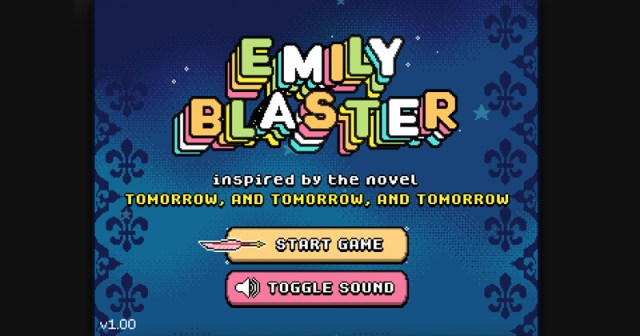 To celebrate the release of Gabrielle Zevin’s Tomorrow, and Tomorrow, and Tomorrow, Knopf built a real-life version of one of the games featured in the book. According to the author: “The game was inspired by the poetry of Emily Dickinson and by edutainment games of the 1980s, like Math Blaster! I liked the slight subversiveness of making a game where the object was to shoot poetry, and I thought that Emily Dickinson’s compact verse style and memorable phrasings would make for perfect targets. Emily Dickinson’s poem “That Love Is All There Is” is featured in EmilyBlaster, and it also provides the epigraph for the novel. I’ve been obsessed with this poem for roughly half my life: Dickinson begins with a riddle about love and answers it with a machine-based metaphor. I joked to my editor that this poem is basically Tomorrow, and Tomorrow, and Tomorrow, but in four lines.”