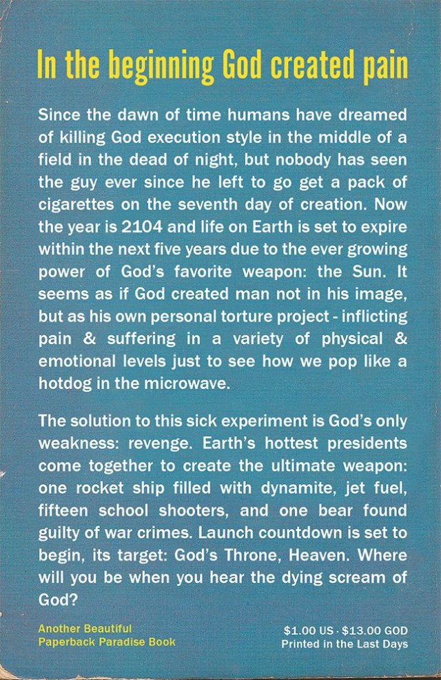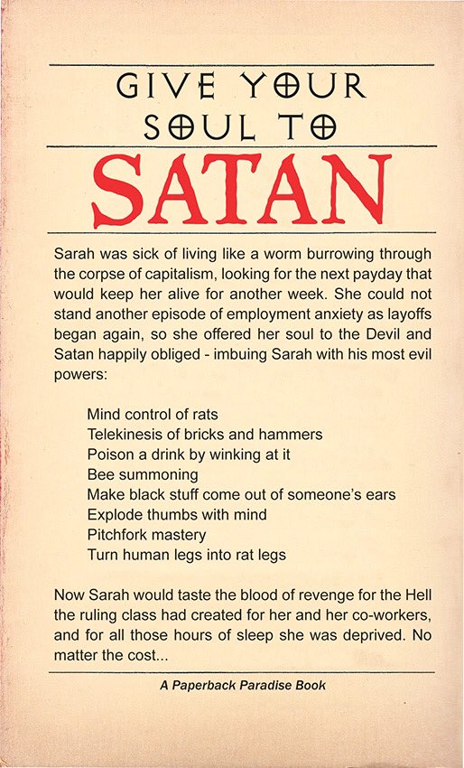 It’s always a happy day when a Tweet from Paperback Paradise pops up in my Twitter feed. I know that I’ve posted about the project before, but one can never have enough bibliophile humor. The graphic designer Domi creates the wildly popular Twitter and Instagram accounts @PaperbackParadise. He sources real paperback books that he then reworks on Photoshop. His parodies typically come with a helping of absurdist dark humor. Not for the faint of heart, Paperback Paradise can be raunchy, crude or even morbid. Domi finds humor in places others might not go.