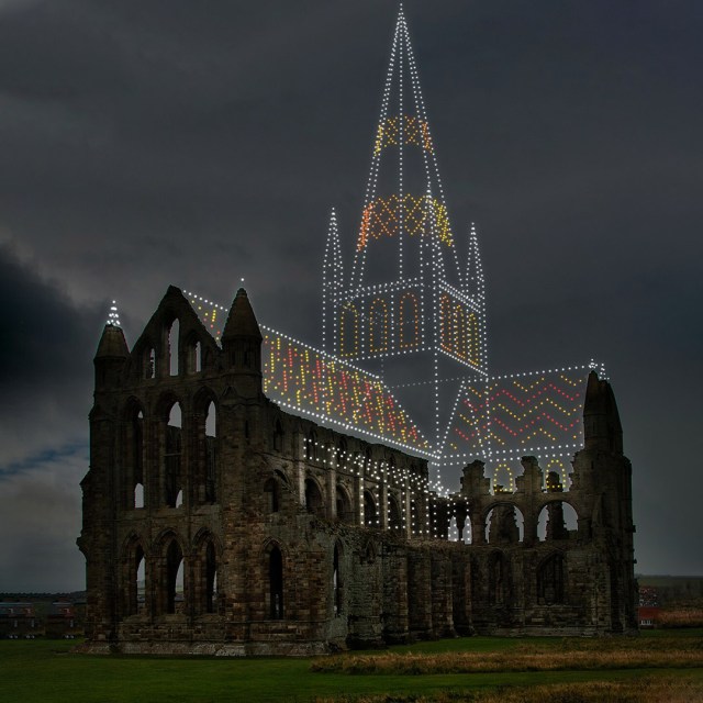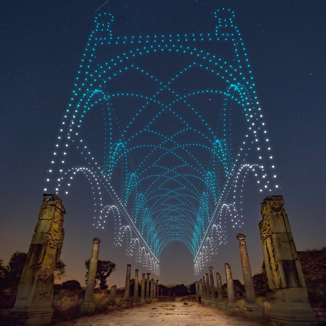 Utilizing a network of illuminated drones, Dutch artist duo DRIFT (aka Lonneke Gordijn and Ralph Nauta) completes or restores famous international architectural landmarks such as Barcelona’s Sagrada Familia and Rome’s Colosseum.