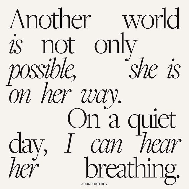 “The system will collapse if we refuse to buy what they are selling…their ideas, their version of history, their wars…their notion of inevitability. Remember this: We may be many and they be few… Another world is not only possible, she is on her way. On a quiet day, I can hear her breathing.”