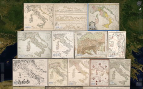 Here’s Amsterdam with 10 historical maps. Hint: The slider on the right controls the transparency of the overlaid map.