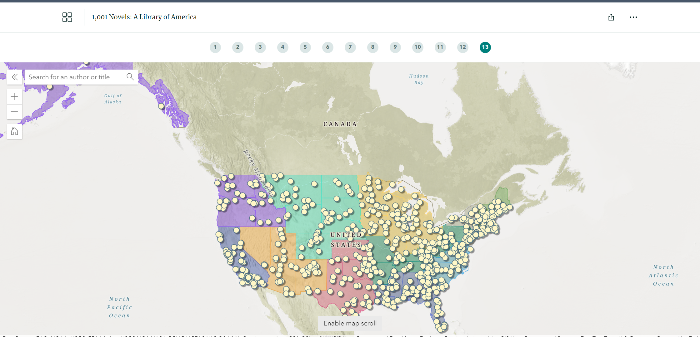 1,001 Novels: A Library of America is a labor of love created by Susan Straight, an author and professor of creative writing at UC Riverside. Over the course of five years, Straight read and mapped 1,001 novels set in the United States. The resulting interactive map allows the user to explore American novels by region, plot, and theme.