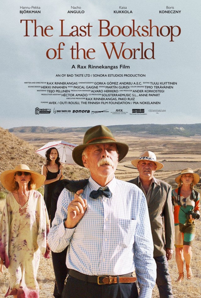 Most booklovers that I know dream of someday owning their own bookshop. The Finnish film The Last Bookshop of the World (La Última Librería del Mundo), written and directed by filmmaker Rax Rinnekangas, is a chronicle of a literary odyssey by four European friends, each speaking a different language (French, Finnish, German, Spanish) who set off in a book-filled van, traversing a barren landscape (the Basque desert region) to an isolated destination where they plan to fulfill a shared bookshop.