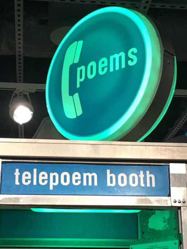 Telepoem Booths are provocative, exciting installation art pieces that place poetry in the public realm. They deliver an impactful emotional insight to each listener. Hearing poetry read can be cathartic and healing, providing a multi-sensory way for the public to access poetry and the human experience. Telepoem Booths give a performance vehicle for voices of many kinds.