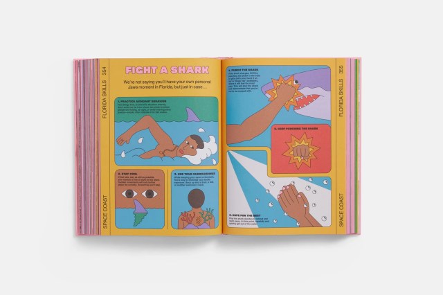 The new book Florida!, which is illustrated by Gabriel Alcala, takes a decidedly tongue in cheek look at America’s playground. The not quite travel guide book dives into local histories with essays and interviews, but also offers wacky Florida survival guides like a step-by-step diagram on “kicking a shark’s ass.” This is not a fanciful diversion. If you swim off of Florida’s beaches, you are guaranteed to be sharing the ocean with sharks.