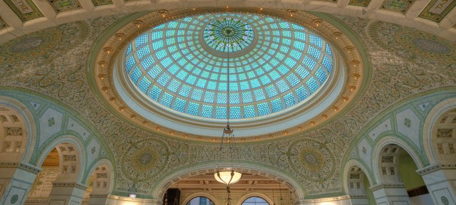 Opened in 1897 as the Chicago Public Library, the Chicago Cultural Center is housed in a beautiful Beaux-Arts building designed by George Foster Shepley, and opened in 1897. While the center is famous for its stunning Tiffany stained-glass domes, it also features a series of wonderful mosaic murals.