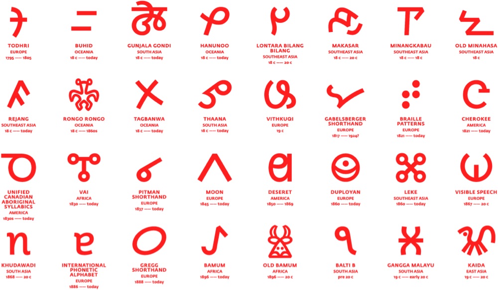 I have to admit that I geeked-out on this fascinating website devoted entirely to global writing systems. During my life I’ve actually learned four writing systems, but in my old age I’m only fluent in one of them. World Writing Systems is an elegant site that allows users to sort by time (proto-cuneiform to Toto), region, name (Adlam to Zou), and whether the scripts are living or historical. Take it for a spin.