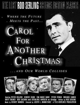 Carol For Another Christmas was directed by Joseph L. Manckiewics for the United Nations and was written by the inimitable Rod Serling. The unusual 1964 television special was presented without commercial interruptions. It was the first of a series of Xerox specials promoting the UN. Director Joseph Mankiewicz’s first work for television, the 90-minute ABC drama was publicized as having an all-star cast. In Rod Serling’s update of Charles Dickens, industrial tycoon Daniel Grudge (Sterling Hayden) has never recovered from the loss of his 22-year-old son Marley (Peter Fonda), killed in action during Christmas Eve of 1944. The embittered Grudge has only scorn for any American involvement in international affairs. But then the Ghost of Christmas Past (Steve Lawrence) takes him back through time to a World War I troopship. Grudge also is visited by the Ghost of Christmas Present (Pat Hingle), and the Ghost of Christmas Future (Robert Shaw) gives him a tour across a desolate landscape where he sees the ruins of a once-great civilization. Others in the cast were Peter Sellers, Percy Rodriguez, Eva Marie Saint, Ben Gazzara, Barbara Ann Teer, James Shigeta and Britt Ekland. Henry Mancini wrote the theme music.