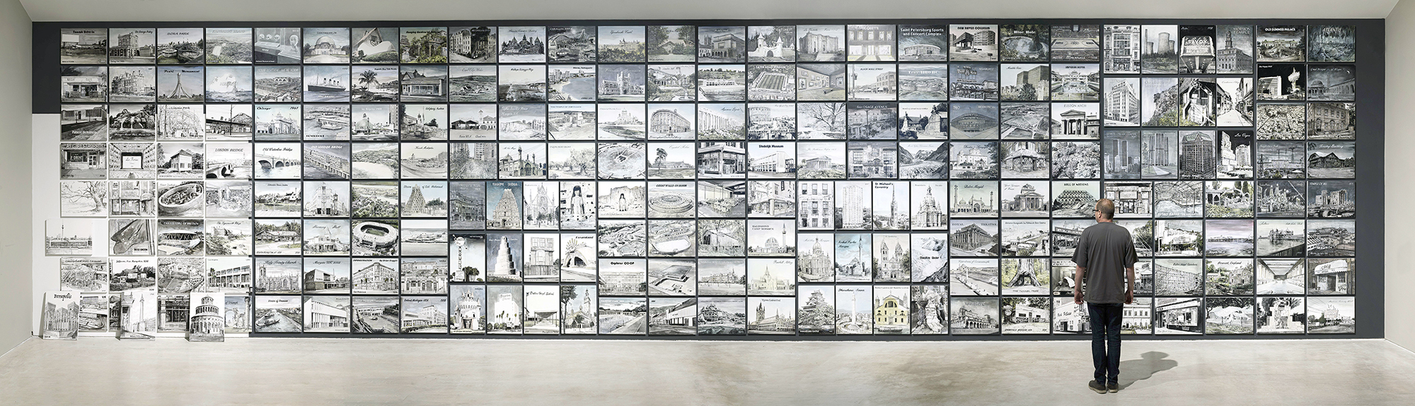 She has painted over 300 sites so far.  Anyone can submit a site to be painted, although she does not guarantee that she will paint each site. All paintings are 24 x 18” (61 x 46 cm) and are painted in monochrome acrylic with oil glazes on wood panels and include the name of the site and the date of the site’s destruction. submitted.