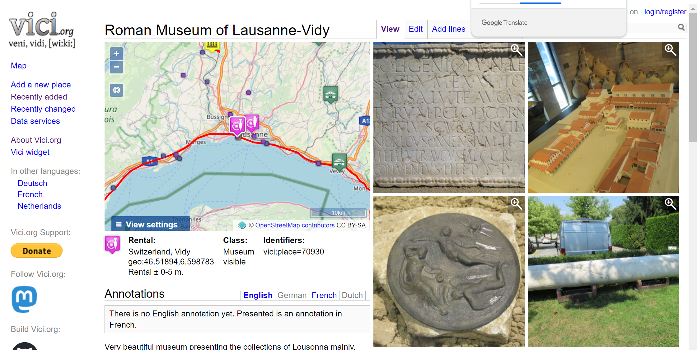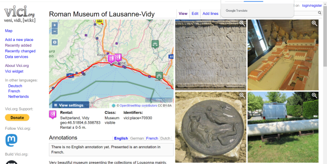 One of the places that I discovered on vici.org was a Roman Museum near Lausanne, Switzerland. Many decades ago, I was staying in a hostel near Lausanne and literally stumbled on the Roman ruins in a field long before the museum was built.