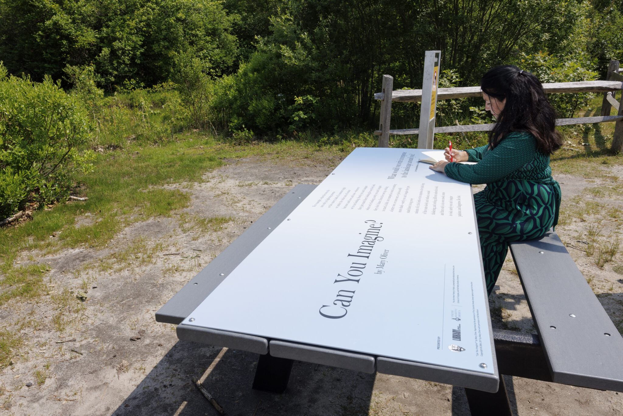 U.S. Poet Laureate Ada Limón kicks off her signature project, “You Are Here: Poetry in Parks,” with the unveiling of a poetry installation at Cape Cod National Seashore, June 14, 2024. The project, in partnership with the National Park Service and Poetry Society of America, features picnic tables in national parks decorated with poems and writing prompts for visitors.