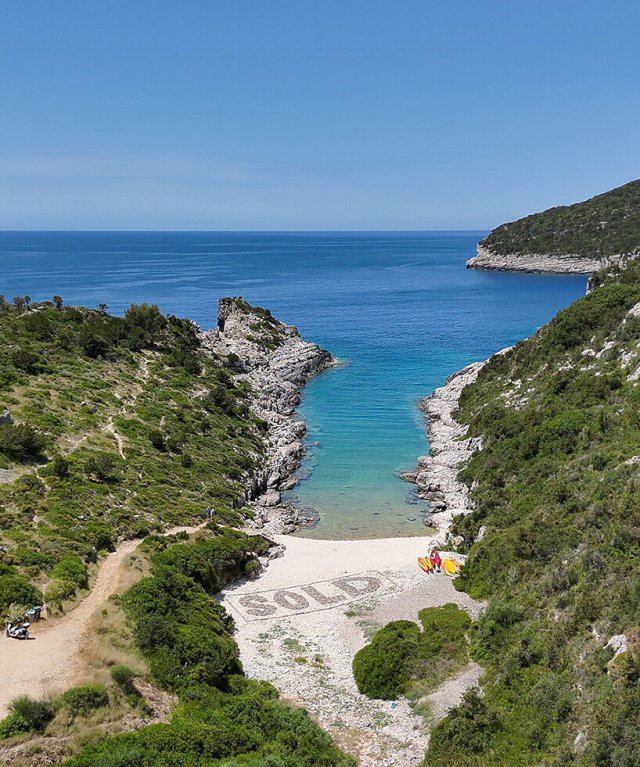 I have fond memories of exploring the Greek islands way back in the 20th century when it was still possible to find secluded beaches and little family run hotels. Alas, mass tourism has made all of that unlikely. The Berlin-based anonymous Greek artist who goes by the name Krank has made a bold statement with a powerful land art installation on the island of Paxos.