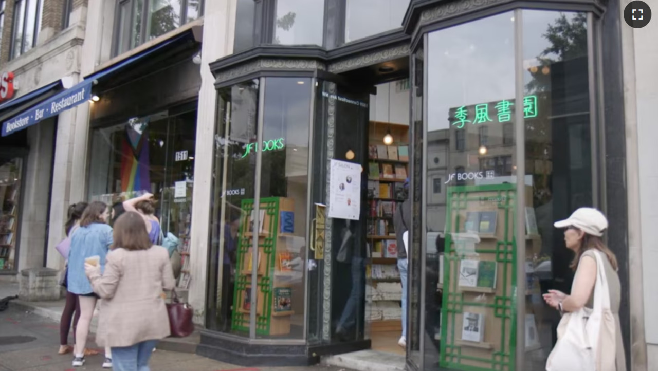 JF Books was teeming with books — and customers — when it opened its doors in Washington’s Dupont Circle neighborhood. In the storefront, the shop’s name is displayed in English and Mandarin in neon green lights. The sporadic rain was perhaps fitting considering the bookstore’s namesake “jifeng” means “monsoon” in Mandarin.