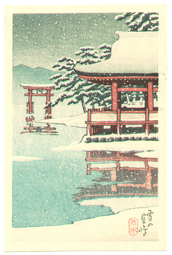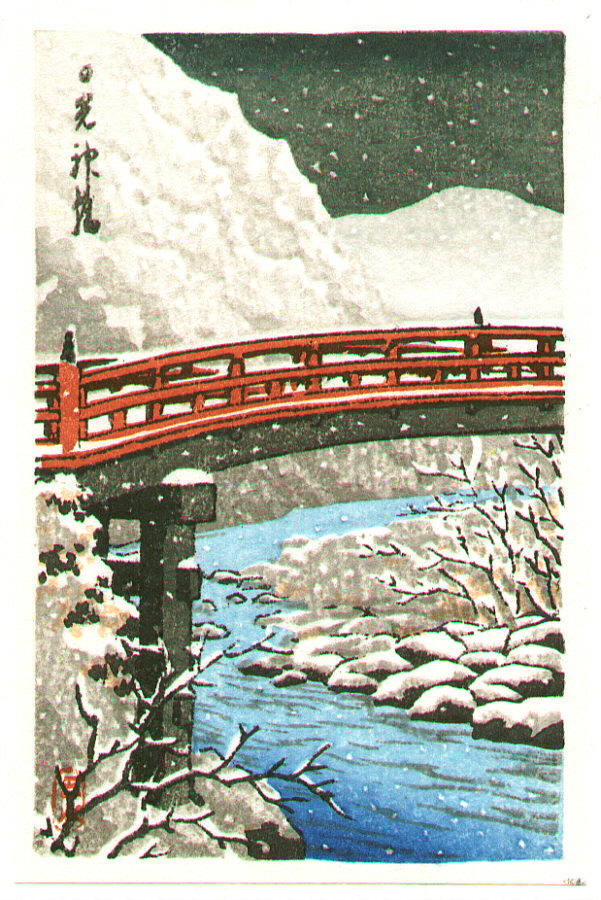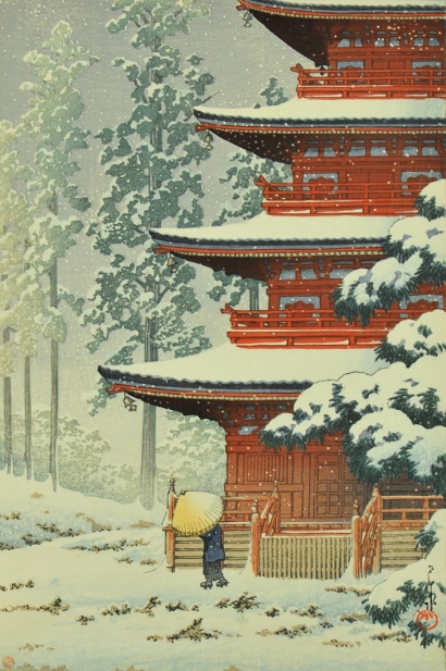 We finally had our first snowfall of the season, which reminded me of this series of snowy woodblock prints by Kawase Hasui. Maybe it had something to do with my purchase of some very expensive plane tickets for a Japan trip. Who knows.