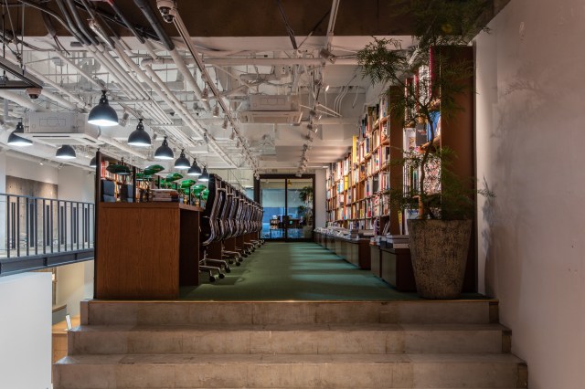 Bunkitsu is divided into several areas, including a long row of lantern-lit desks with plenty of space to spread out and either read or work. Every seat has power outlets for plugging in a laptop, phone, or tablet.
