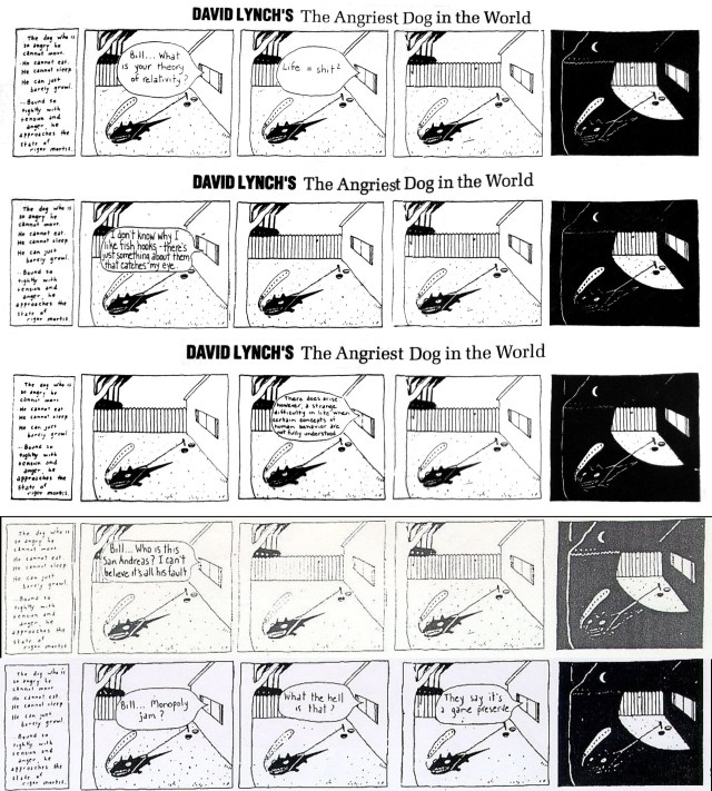Filmmaker David Lynch sadly passed away last week. I was today years old when I discovered that he had created a newspaper comic strip called ‘The Angriest Dog in the World’.