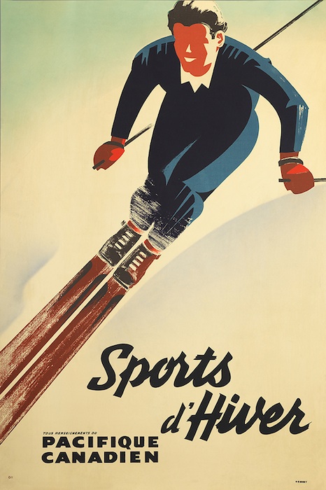 It seems like an opportune moment to feature some classic Canadian travel posters. Stylish posters along with tourism brochures were produced by Canadian Pacific for its network of railways, steamships, airlines, and hotels. They were generally well designed—and frequently quite fetching. This should come as no surprise considering the caliber of artists the company employed, although not all of CP’s artists were necessarily widely acclaimed. The company also hired artists who worked in near anonymity at the time, and about whom even less is known today.