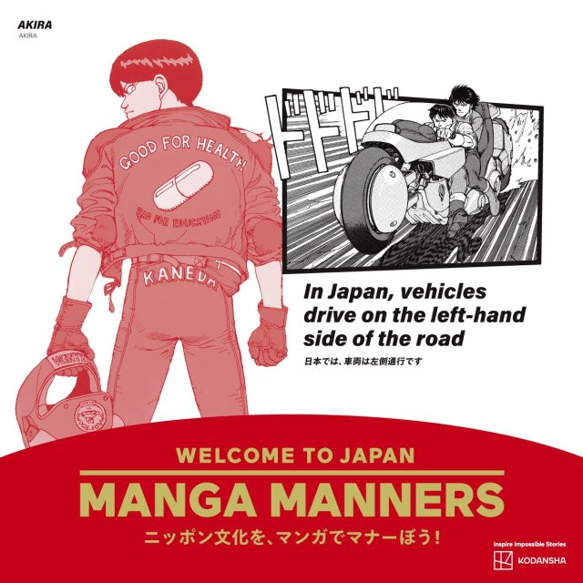 The “MANGA MANNERS” campaign utilizes characters from 17 popular Kodansha manga titles to illustrate various aspects of Japanese etiquette. Themes range from hygiene and attire to food and also safety. Sailor Moon teaches how to properly wear a Kimono while Akira educates on traffic laws.