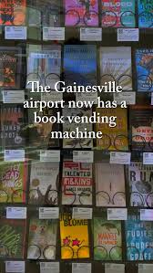 Many, many years ago, I lived in the university town of Gainesville, Florida. One of the many limitations of the small city was its not so great transportation services, including a sorry little airport. But now the Alachua County Regional Airport even features a book vending machine highlighting Florida authors, courtesy of Gainesville’s Lynx bookstore. The Gainesville Sun reported that the machine was “unveiled by the Lynx bookstore co-founders Lauren Groff and Clay Kallman, who view the vending machine as a passion project. The hope is that the vending machine will provide book readers and frequent flyers another way to enjoy their flight experience.”