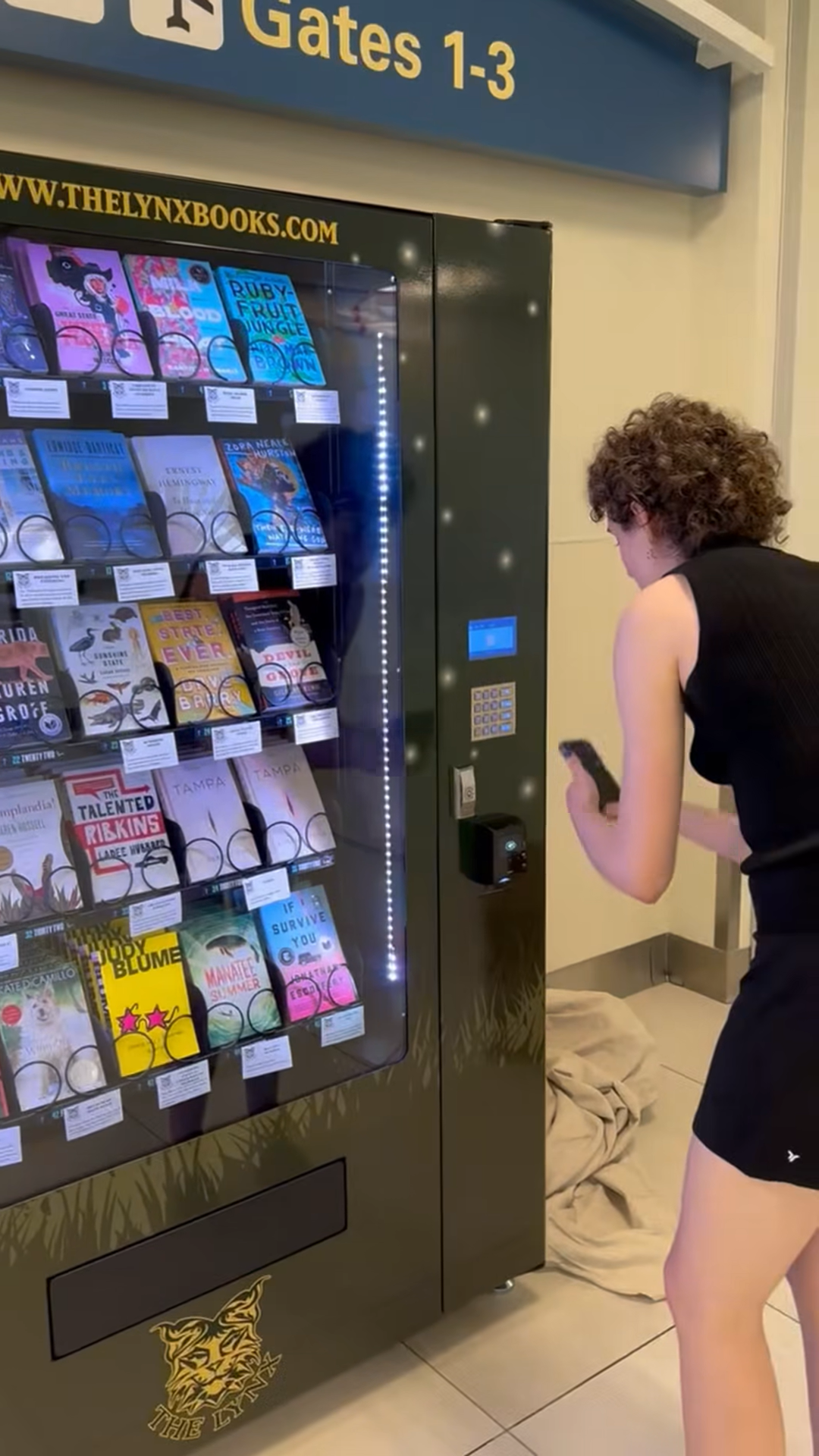 Many, many years ago, I lived in the university town of Gainesville, Florida. One of the many limitations of the small city was its not so great transportation services, including a sorry little airport. But now the Alachua County Regional Airport even features a book vending machine highlighting Florida authors, courtesy of Gainesville’s Lynx bookstore. The Gainesville Sun reported that the machine was “unveiled by the Lynx bookstore co-founders Lauren Groff and Clay Kallman, who view the vending machine as a passion project. The hope is that the vending machine will provide book readers and frequent flyers another way to enjoy their flight experience.”