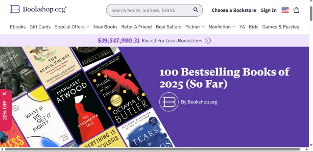 The online bookseller bookshop.org recently released a list of their bestselling books of the year (so far). The list is quite a bit different than what you might see from larger booksellers and looks more like what your local bookstore has on their bestseller list. I was somewhat surprised to find that I’d only read eleven of the books on the list, and that they were all older issues. Here are the top five: