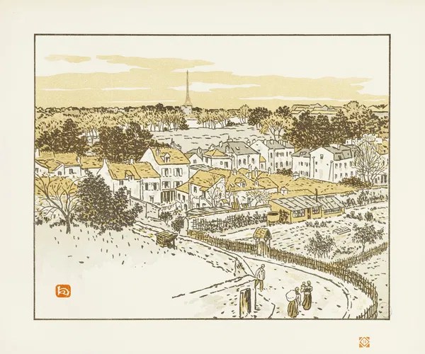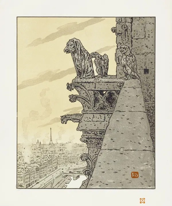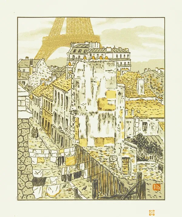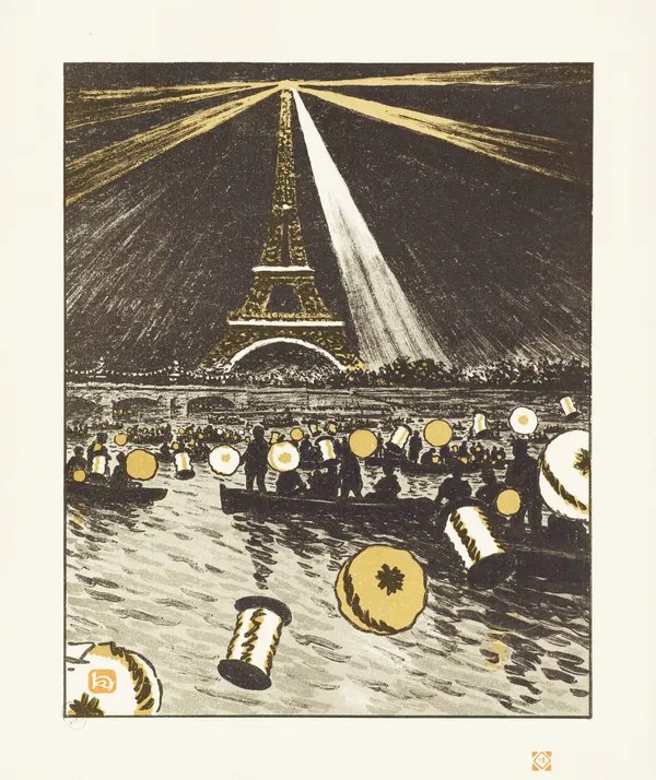 Les Trente-Six Vues de la Tour Eiffel is a book that contains 36 lithographs by Henri Rivière printed in 1902. These lithographs reflect the social, political, and artistic changes that had occurred in Paris by the end of the nineteenth century. The lithographs also reflect the powerful influence of Japonisme, the study of Japanese art and design by European artists, in the latter half of the nineteenth century.