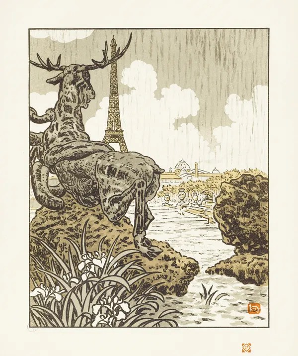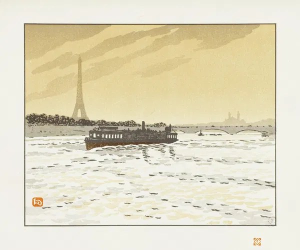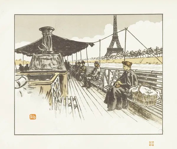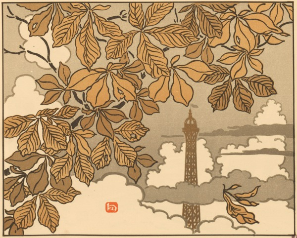 Rivière was particularly inspired by Japanese artist Katsushika Hokusai and his book Thirty-six Views of Mt. Fuji, printed between 1830 and 1832. Hokusai, in this series, used Mt. Fuji as the common element that oriented and unified his landscape prints. Similarly, Rivière chose the Eiffel Tower to orient and unify his lithograph series of Paris, Les Trente-Six Vues de la Tour Eiffel.