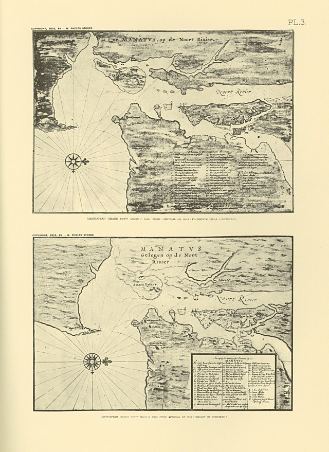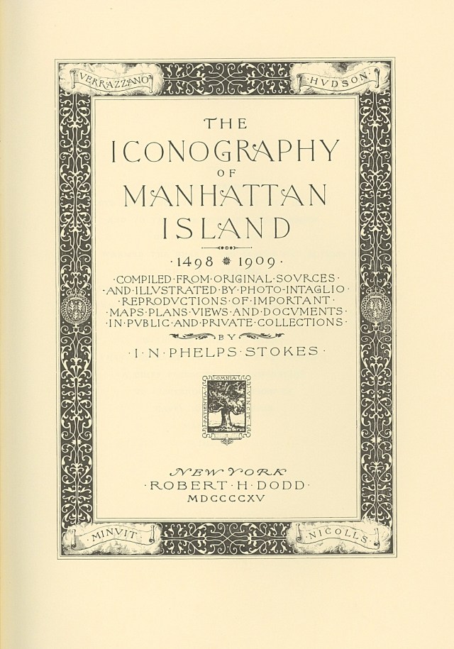 I recently spotted a fascinating early 20th century book on New York City’s early history that I had actually used as a source for a paper on the Dutch settlement while working on an undergraduate degree in History Education many decades ago. The Iconography of Manhattan Island, 1498-1909, by Isaac Newton Stokes. Originally published between 1915 and 1928 by R.H. Dodd in New York City, the grand six volume set abounds with illustrations, maps, and documents compiled from public and private collections.