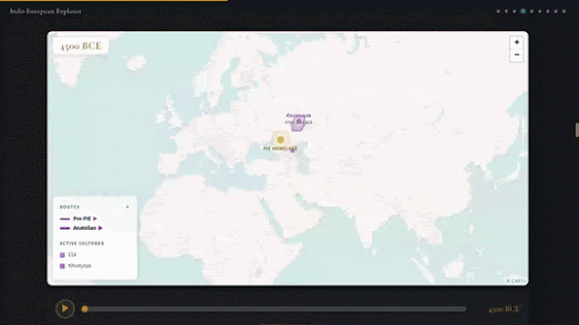 The Indo-European Explorer helps bring this story to life. Using thousands of ancient DNA samples, archaeological records, and extensive linguistic data, it turns this linguistic journey into an interactive experience – inviting you to trace the movements, connections, and transformations that shaped the languages that many of us speak today.