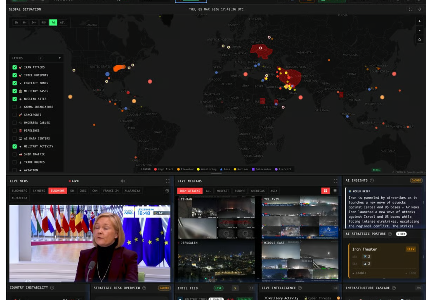 The savvy traveler these days best take a deep dive into the risk pool. The World Monitor is a real-time global intelligence dashboard that includes military activity, climate anomalies, live webcam feeds in warzones, internet outages, active fires, and even stormy weather.