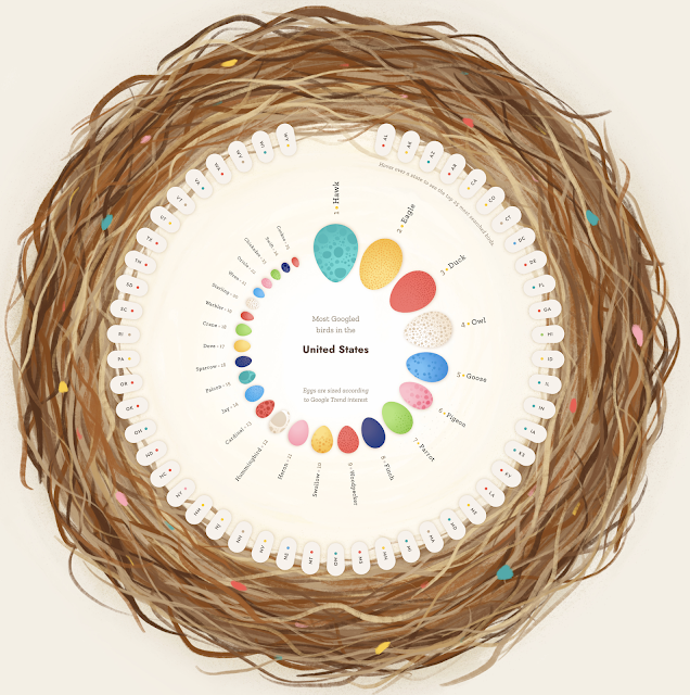 Data visualization artist Nadieh Bremer created Searching For Birds, a website which turns Google Trends data into a wonderfully scrollable exploration of which birds Americans search for — and why the rarest ones barely register at all.